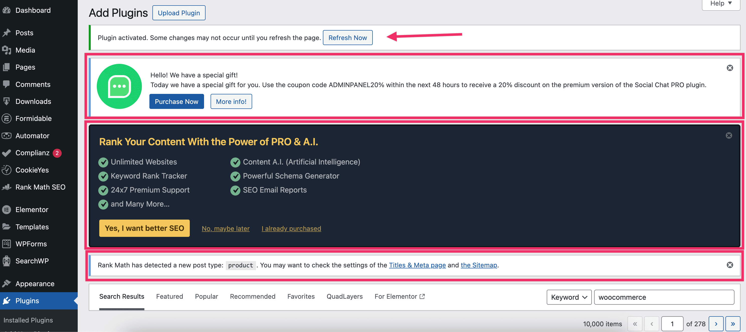 Here's an example of what happened when I tried to install WooCommerce on