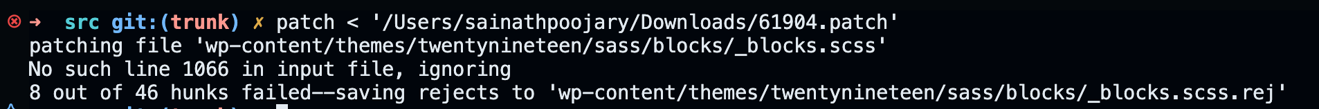 hunks failed, and the patch could not be fully applied automatically,