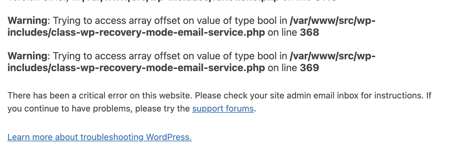 [wp-trac] [WordPress Trac] #62816: Trying to access array offset on false in /{PATH}/wp-includes/class-wp-recovery-mode-email-service.php on line 367
