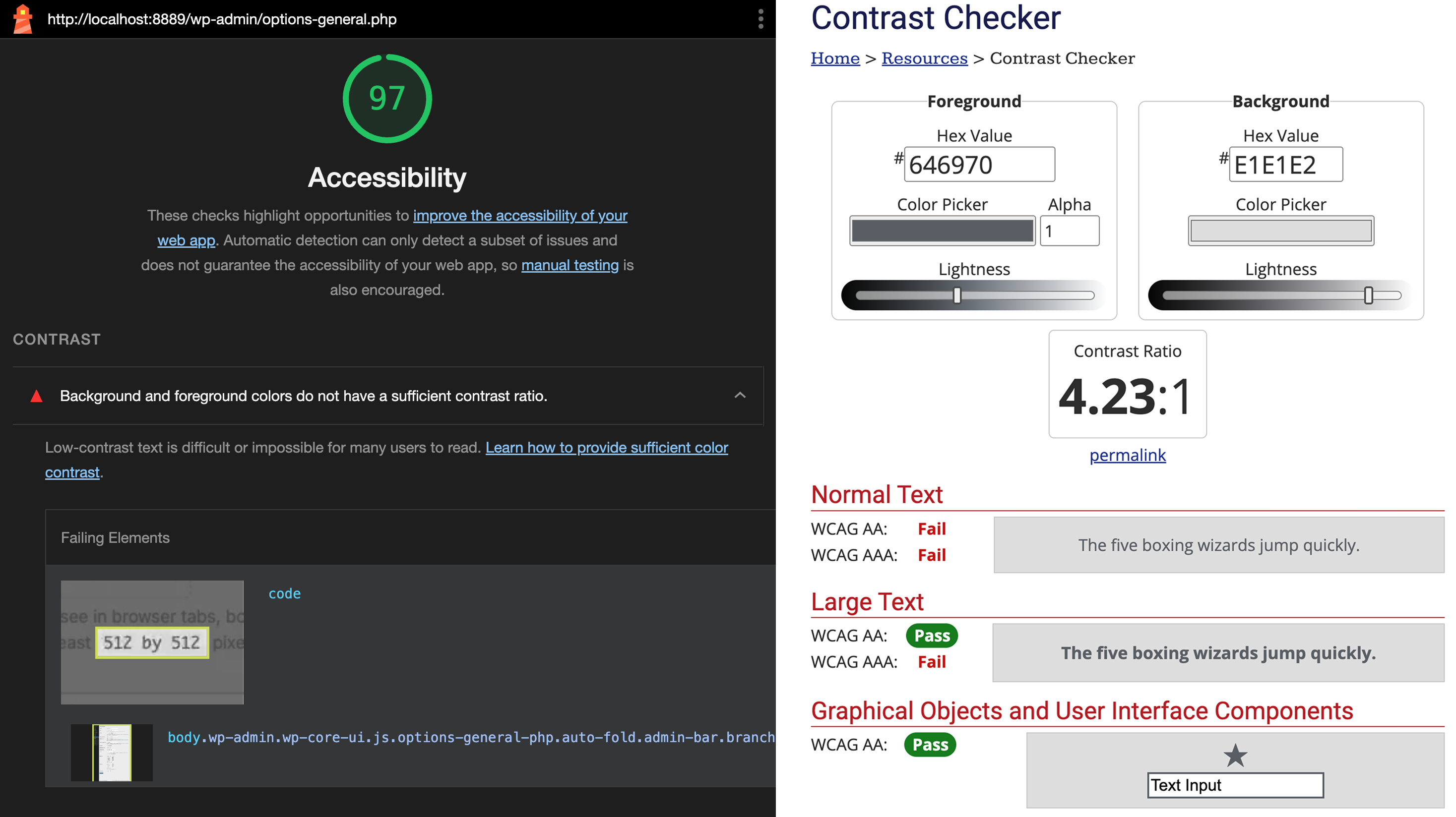 and background, failing WCAG 2.1 AA and AAA contrast requirements. The