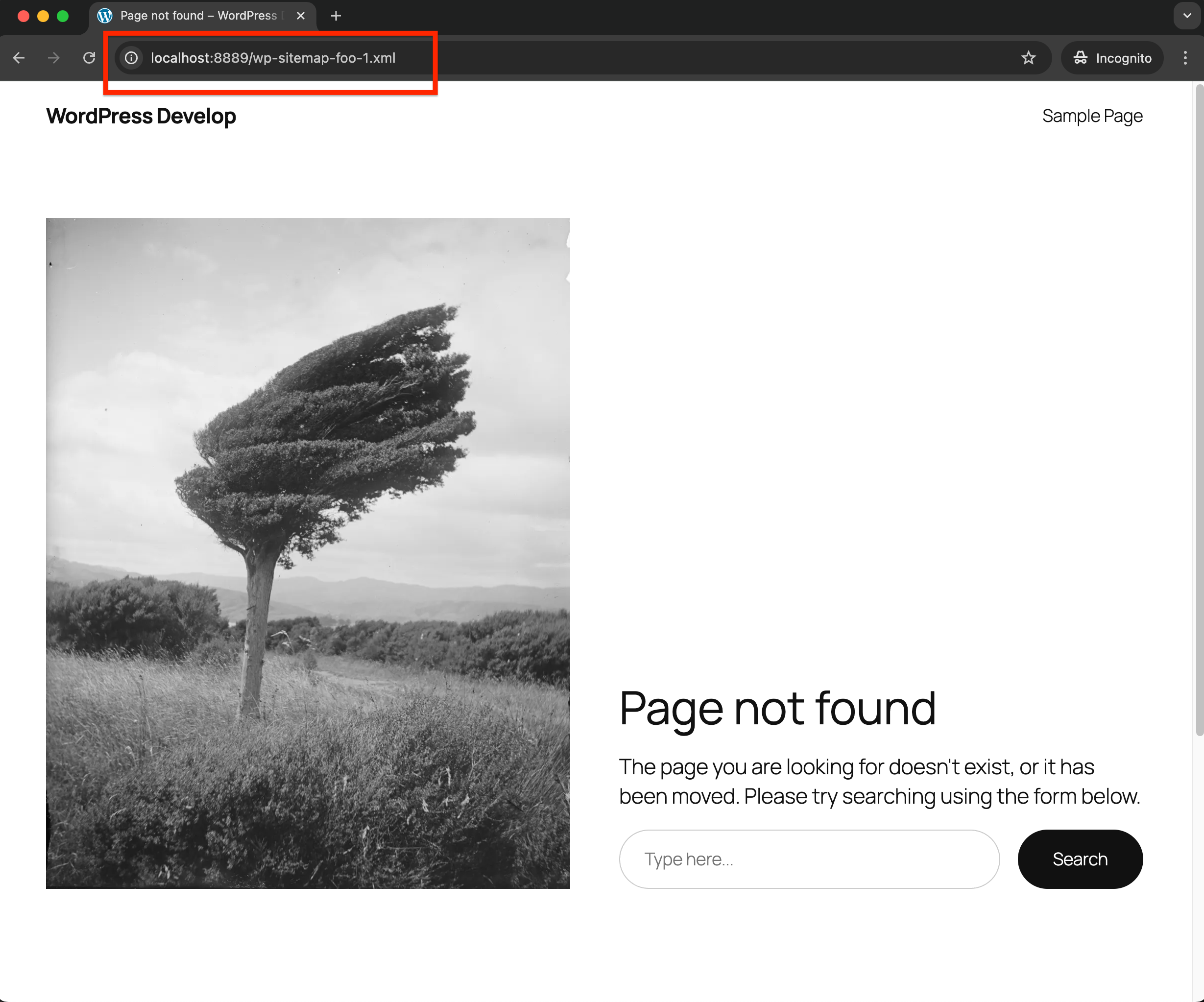 2. http://localhost:8889/wp-sitemap-foo-1.xml displays 404 page (When